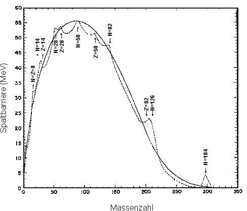 Das sind Elemente, bei denen durch Schalenstabilisierung die Spontanspaltung so sehr behindert wird, dass sie wieder Halbwertszeiten von Jahren (mindestens jedoch Stunden) haben sollen. In diesem Kontext sind auch die Entdeckungen des Isotops 283112 mit einer Halbwertszeit von 81 +200–35 s [Oga98] und des Isotops 298114 mit einer Halbwertszeit von 30,4 s in Dubna[3] [Oga99] einzuordnen, die jedoch kontrovers diskutiert werden [Hof98, Arm00, Hof00].